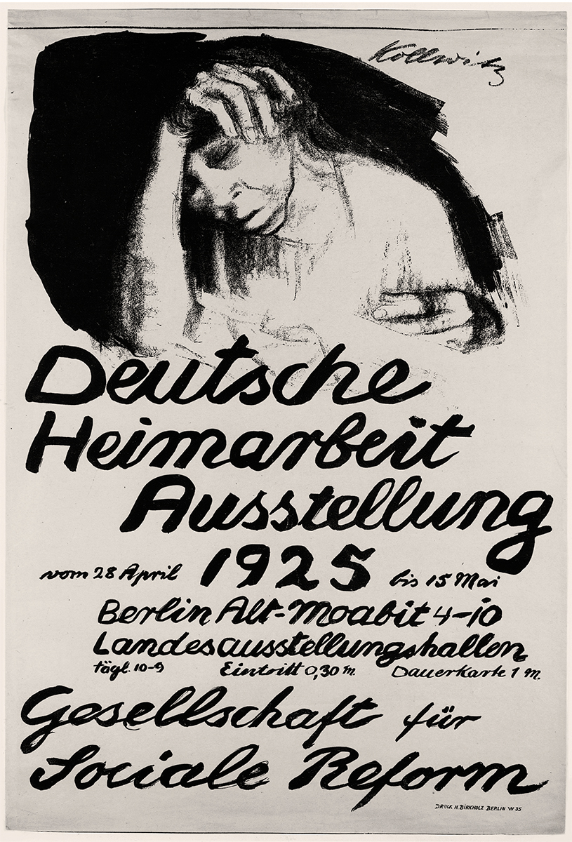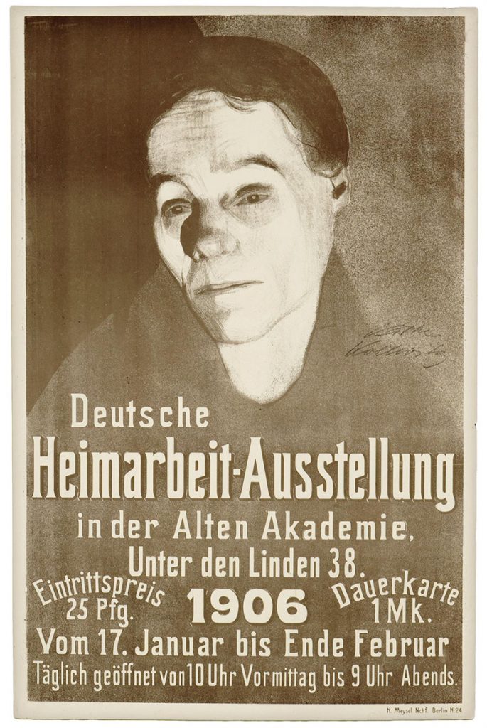 Das Werbeplakat zur Deutschen Heimarbeit-Ausstellung 1906 in Berlin war wohl das erste Plakat, welches Käthe Kollwitz gestaltete. Wahrscheinlich verdankte sie den Auftrag ihrem Zyklus Ein Weberaufstand. Die grafische Folge brachte die Not und Verzweiflung der „heimarbeitenden“ Weber eindrucksvoll zum Ausdruck. Die Heimarbeit-Ausstellung verfolgte das Ziel, auf die schlechte Lohnsituation in der Textilbranche aufmerksam zu machen. Berlin galt damals als Zentrum der Heimarbeit für die Bekleidungsindustrie.