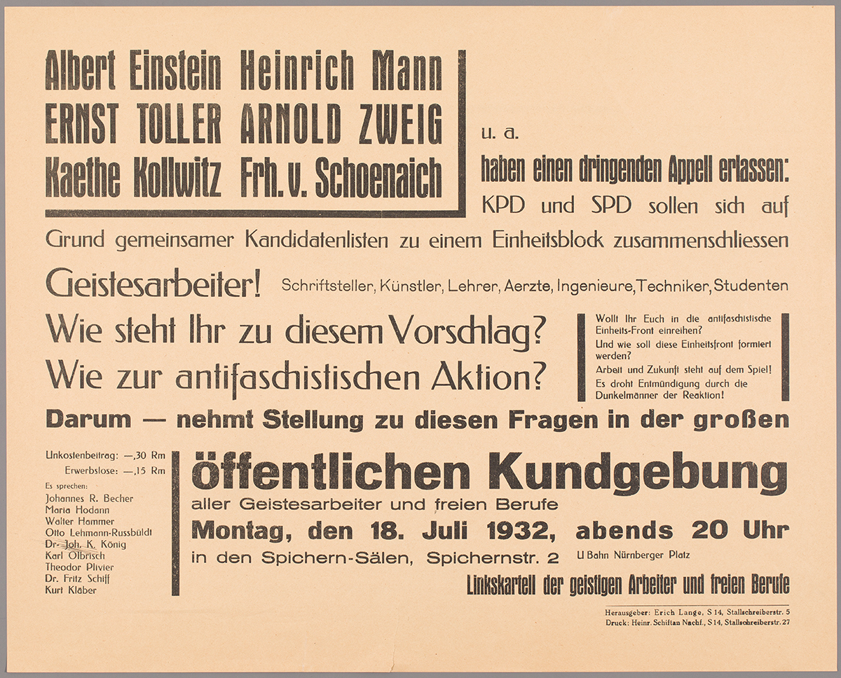 Als letzte gemeinsame Aktion unterzeichneten beide 1932 den Dringenden Appell. Im gleichen Jahr kehrte Einstein von einer Vortragsreise in den USA nicht mehr nach Deutschland zurück.